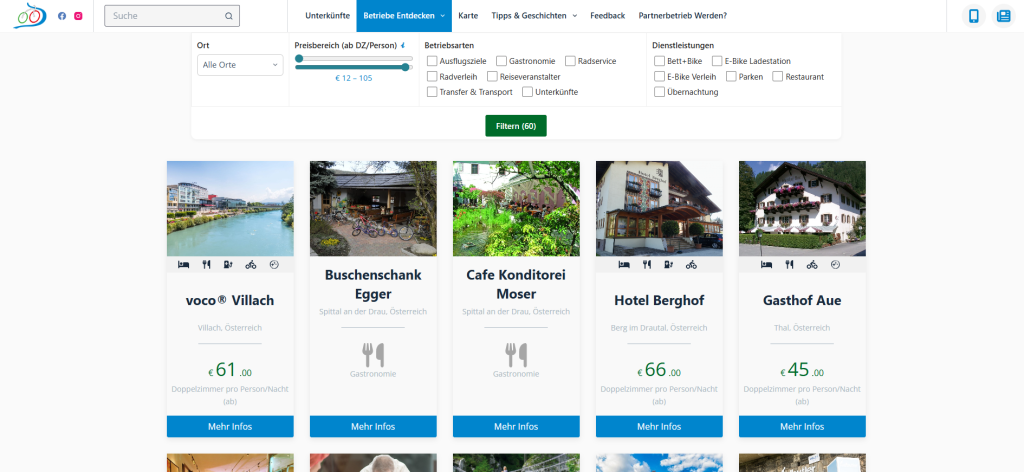 Mit eigener Subdomain (z. B. ihr-radweg.at) oder auf Wunsch auch vollständig unter Ihrer eigenen Domain – inklusive Anpassung an Ihr Branding, Farben, Logo und Bildstil.